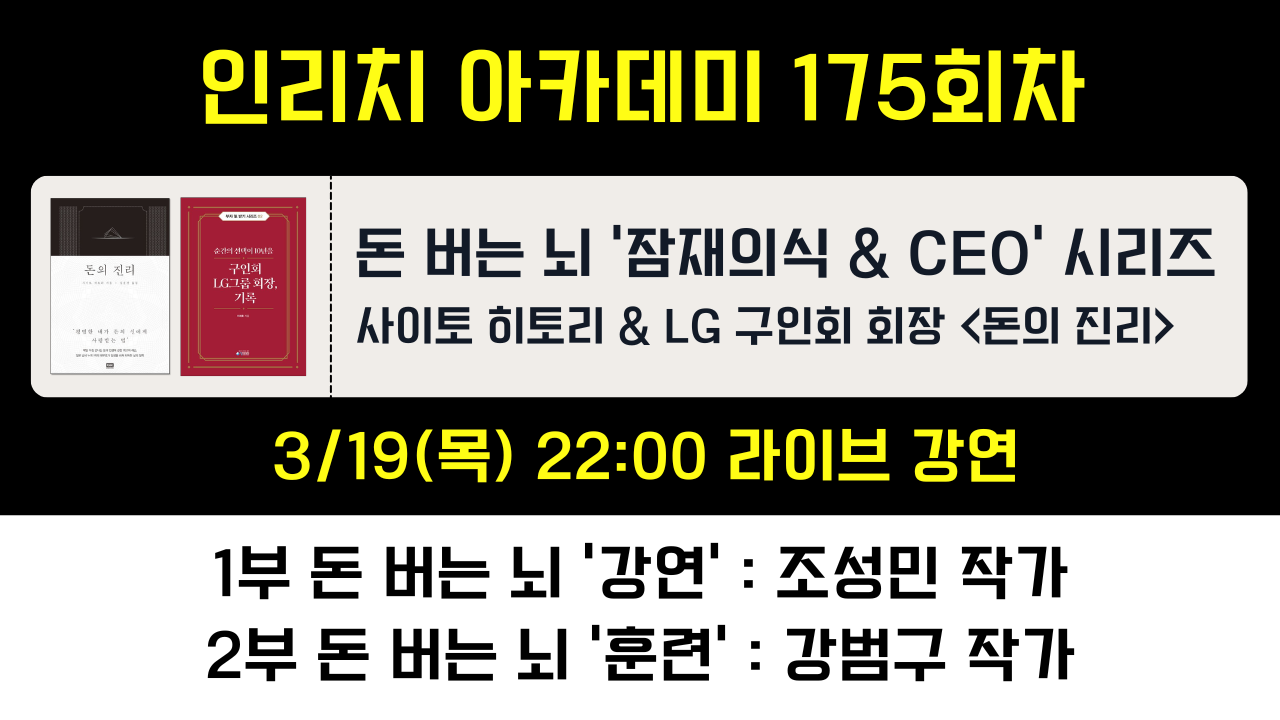 인리치아카데미는 '돈 버는 뇌'를 위한 강연 및 훈련 기관입니다.